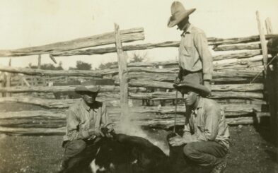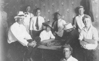 Photographs. Twelve red binders of prints organized under the topics Agriculture/Stock Shows, Events (Parades, Rodeos, Fairs, Picnics, Organizations), Fishing, Hunting, Bands, Weddings, Rangers, Jobs, Homes, People, Schools, Churches, Smaller Communities, Hilda Community, and Sesquicentennial.